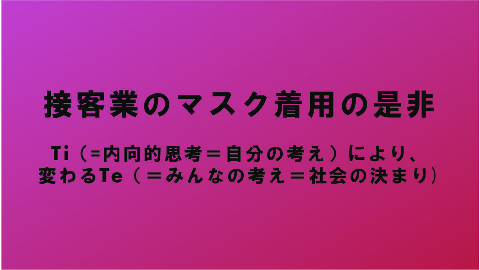 Si(これまでの経験、常識とされていること) Te(世の中のルール=正しいとされていること)Fi( 自分の感じたこと) Ni(直観) 等です。